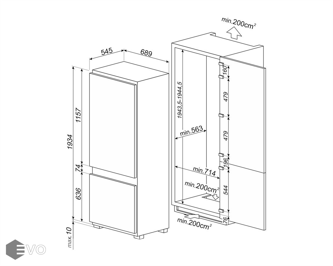 - Габариты ниши для встраивания (В х Ш х Г), см 194.3-194.4x71.4x56.3