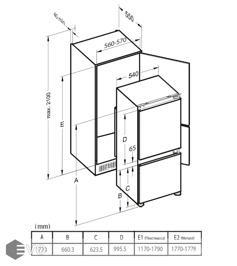 Размеры встраивания (ВхШхГ), мм: 1770-1778x560-570x550