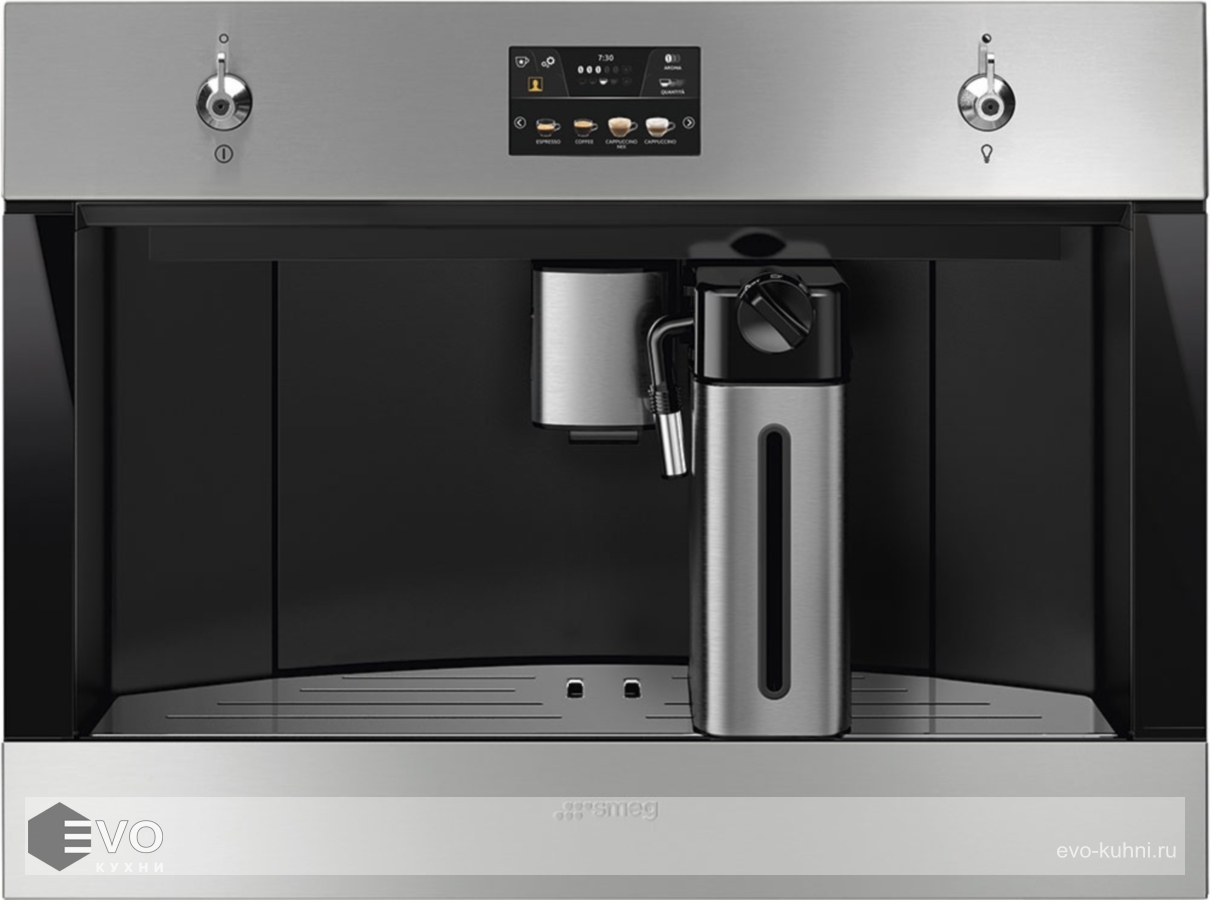 Автоматическая кофемашина Smeg CMS4303X – кофемашина работает на зерновом и молотом кофе. Вы можете приготовить с ее помощью 13 напитков: стандартные эспрессо, капучино, американо и другие, а также необычные допио, флэт уайт, ристретто. Кроме того, она подает пар и горячую воду для заваривания чая. Удобный капучинатор, съемный кувшин для молока делают использование техники приятнее и проще. Есть специальная программа для очистки от накипи, система сама производит ополаскивание, чтобы внутри не оставалось грязи.