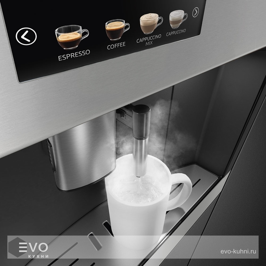 Фасад цвета нержавеющей стали дополнен покрытием, защищающим против отпечатков пальцев, и эффектной подсветкой. Получить любимый напиток будет очень легко благодаря регулировке крепости кофе, его температуры, размера порции, а также степени помола зерен при использовании зернового кофе. Панель управления располагается в верхней части, на ней находится большой сенсорный цветной TFT-дисплей и два поворотных переключателя под нержавеющую сталь. Индикаторы оповещают о недостатке воды в резервуаре и необходимости замены фильтра.