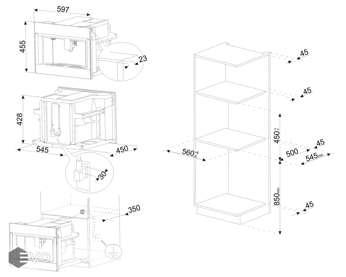 - Регулируемый по высоте дозатор кофе: есть, 85 - 142 мм