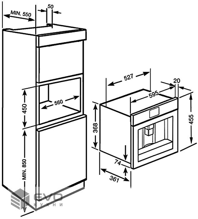 При использовании зерен выбирается степень помола. Автоматическое программирование времени включения машины позволяет отложить старт на удобное время. Если прибор не используется в течение часа, он автоматически переключается в режим энергосбережения Stand-by. Контейнер для воды объемом 1,8 литра и для зерен легко доступны, они выдвигаются на телескопических направляющих.