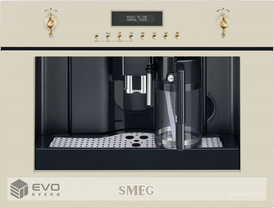 Автоматическая кофемашина Smeg CMS8451P – встраиваемая в колонну автоматическая кофемашина с латунной фурнитурой предназначается для работы с молотым и зерновым кофе. Модель отличает горизонтальная панель управления с цветным многоязычным LСD-дисплеем и поворотными переключателями в стиле ретро. Пользователь может приготовить себе напиток в соответствии со своими предпочтениями: выбрать один из трех уровней регулировки количества кофе на чашку и задать уровень крепости напитка от очень слабого до крепкого и очень крепкого.