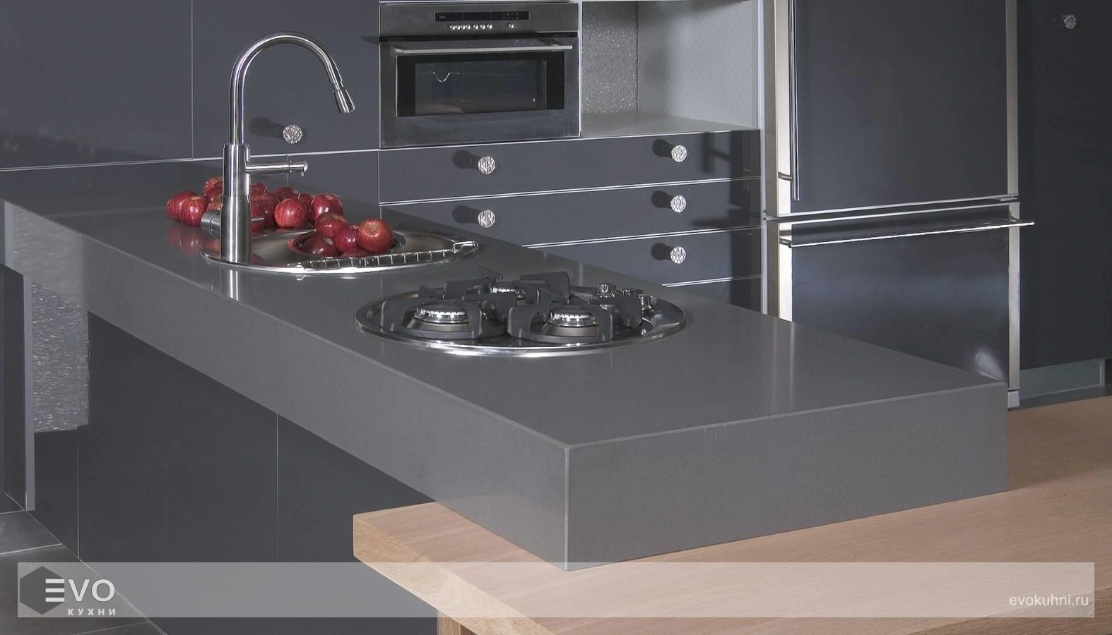 Кварцевый камень Caesarstone в виду отсутствия пор, присущих природному камню, не боится проникновения и окрашивания красящими жидкостями: вином, соком, жировыми пятнами и грязью, что делает его не заменимым при изготовлении кухонных столешниц.