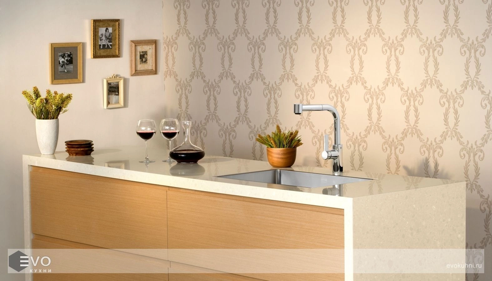 Кварцевый камень Caesarstone в виду отсутствия пор, присущих природному камню, не боится проникновения и окрашивания красящими жидкостями: вином, соком, жировыми пятнами и грязью, что делает его не заменимым при изготовлении кухонных столешниц.