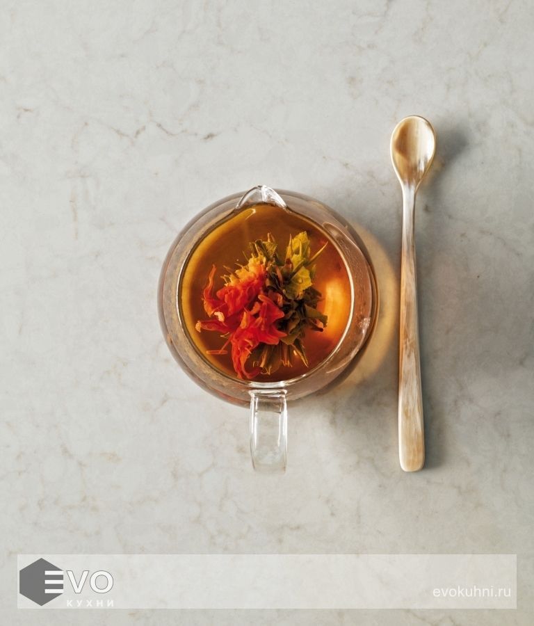 Кварцевый камень Caesarstone в виду отсутствия пор, присущих природному камню, не боится проникновения и окрашивания красящими жидкостями: вином, соком, жировыми пятнами и грязью, что делает его не заменимым при изготовлении кухонных столешниц.