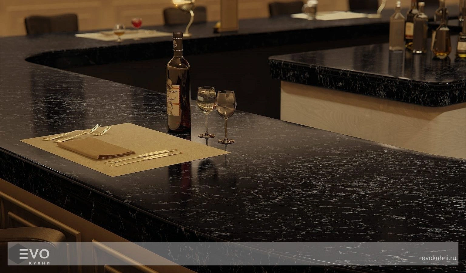 Кварцевый камень Caesarstone в виду отсутствия пор, присущих природному камню, не боится проникновения и окрашивания красящими жидкостями: вином, соком, жировыми пятнами и грязью, что делает его не заменимым при изготовлении кухонных столешниц.