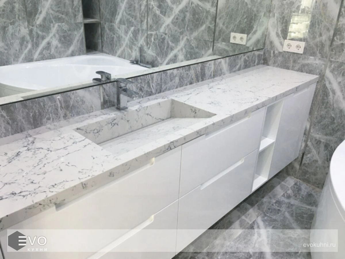 - Стойкий к химическим веществам: Поверхности из Caesarstone, не требуется дополнительная обработка защитной химией или пастами как для природного камня (кроме матовых или фактурных поверхностей).