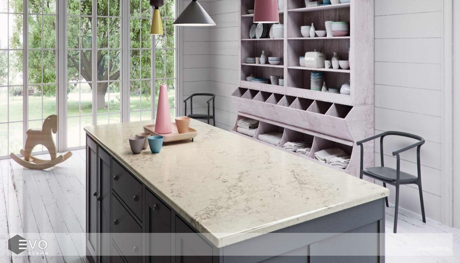 Кварцевый камень Caesarstone в виду отсутствия пор, присущих природному камню, не боится проникновения и окрашивания красящими жидкостями: вином, соком, жировыми пятнами и грязью, что делает его не заменимым при изготовлении кухонных столешниц.