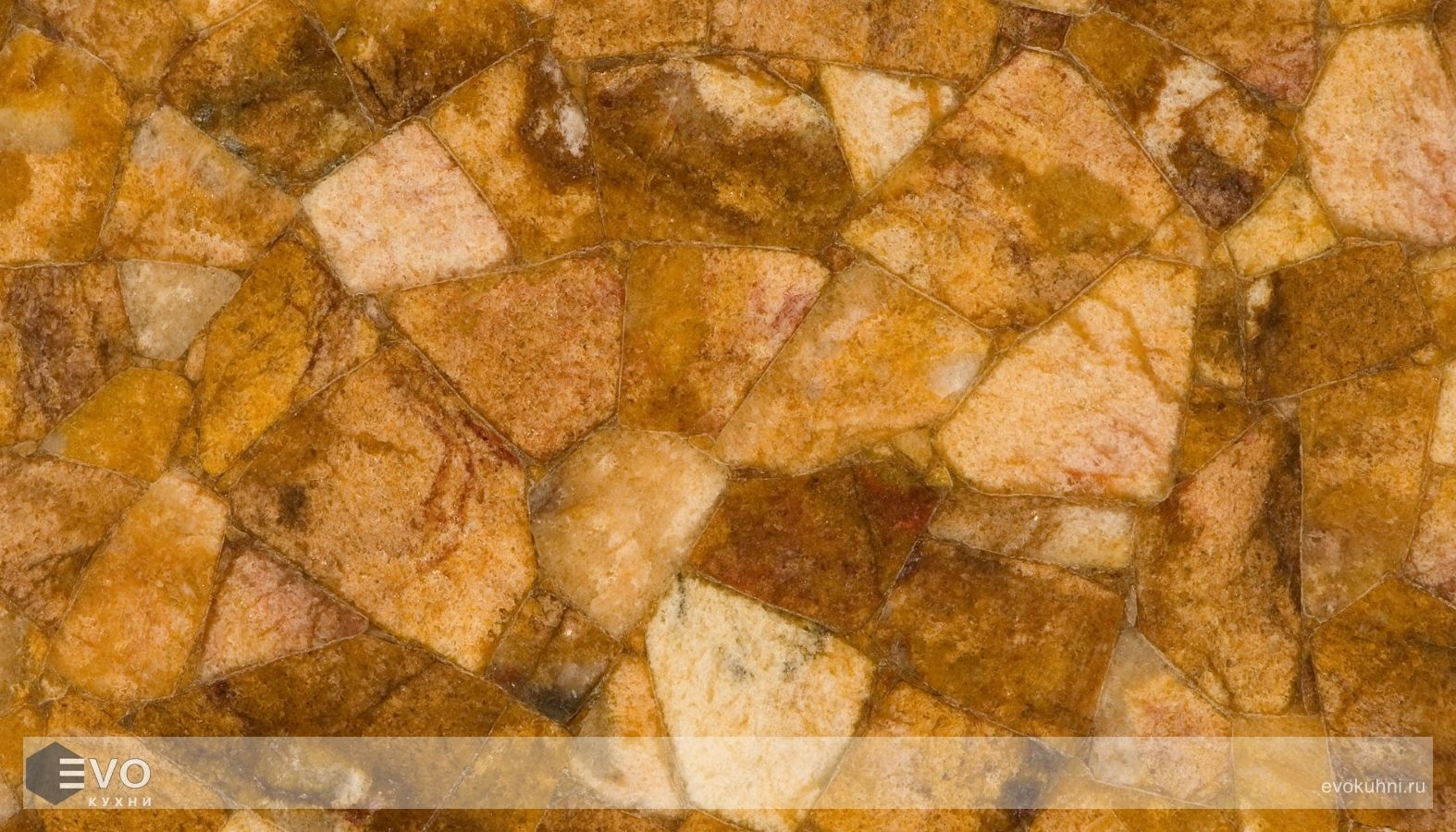 В состав камня Caesarstone 8430 Янтарный кварц входит одна из разновидностей кварца насыщенного, оранжево-медового и одновременно полупрозрачного цвета.