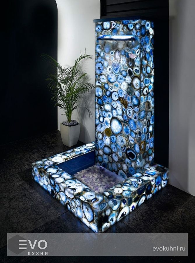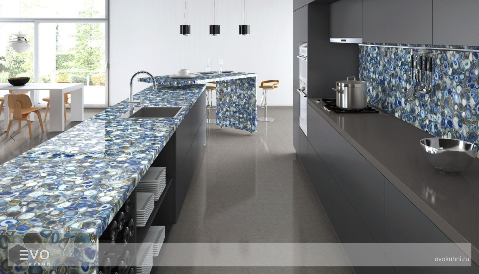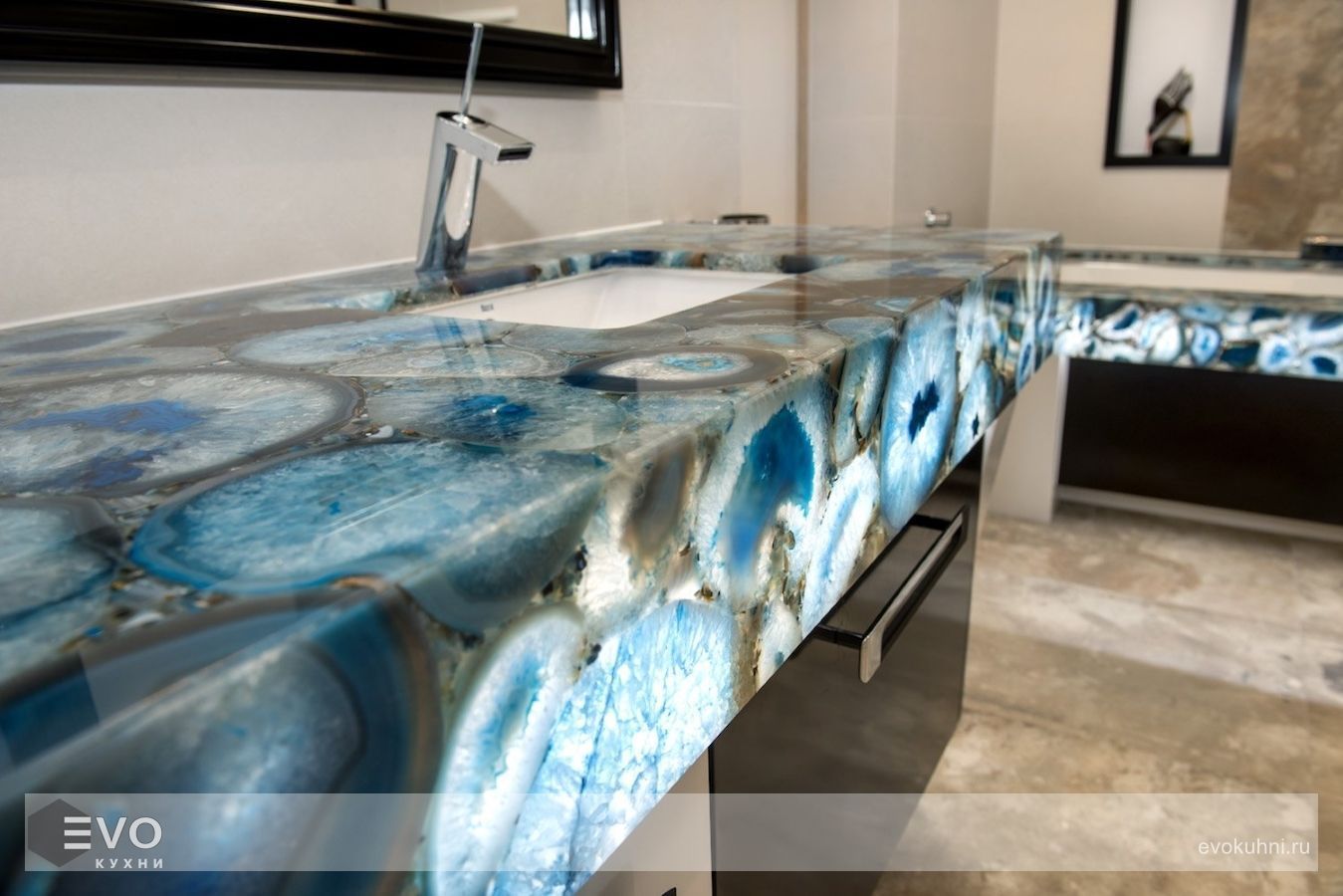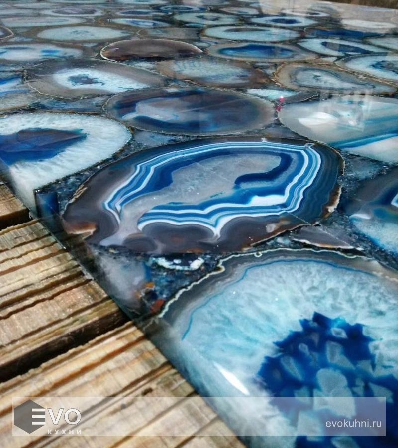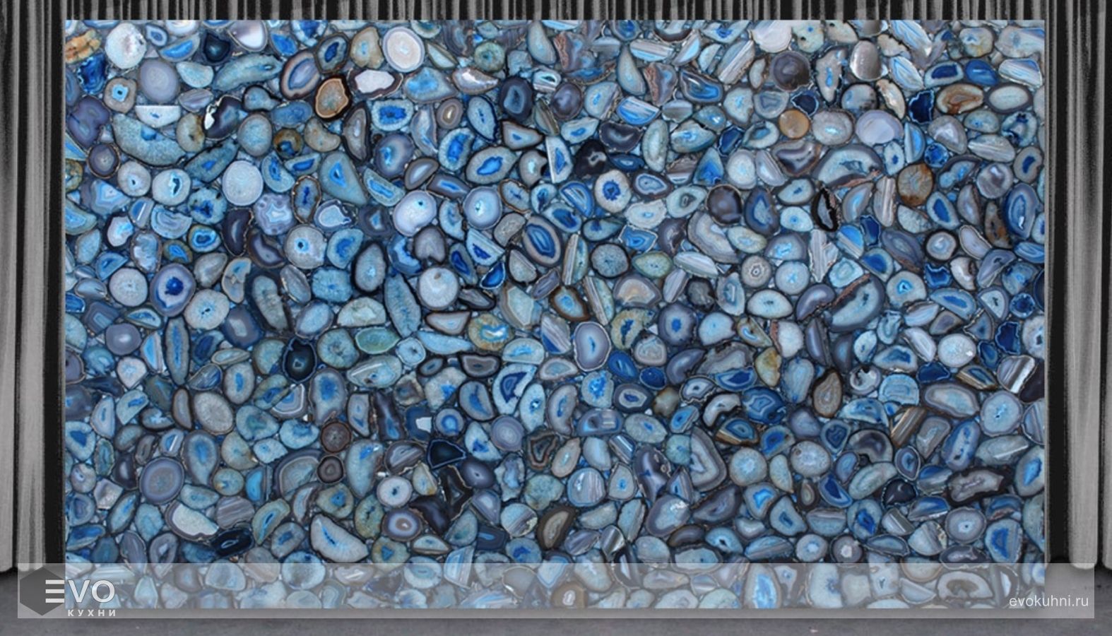 Камень Caesarstone 8531 Голубой агат состоит из природного агата, разновидности кварца. В цвете этого камня виден богатый набор ярко-синих и бежевых тонов.