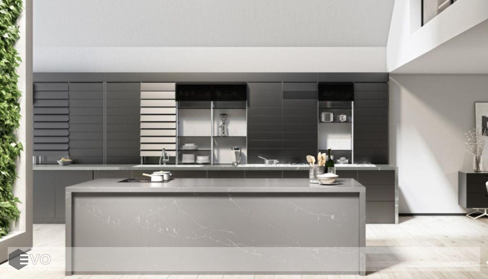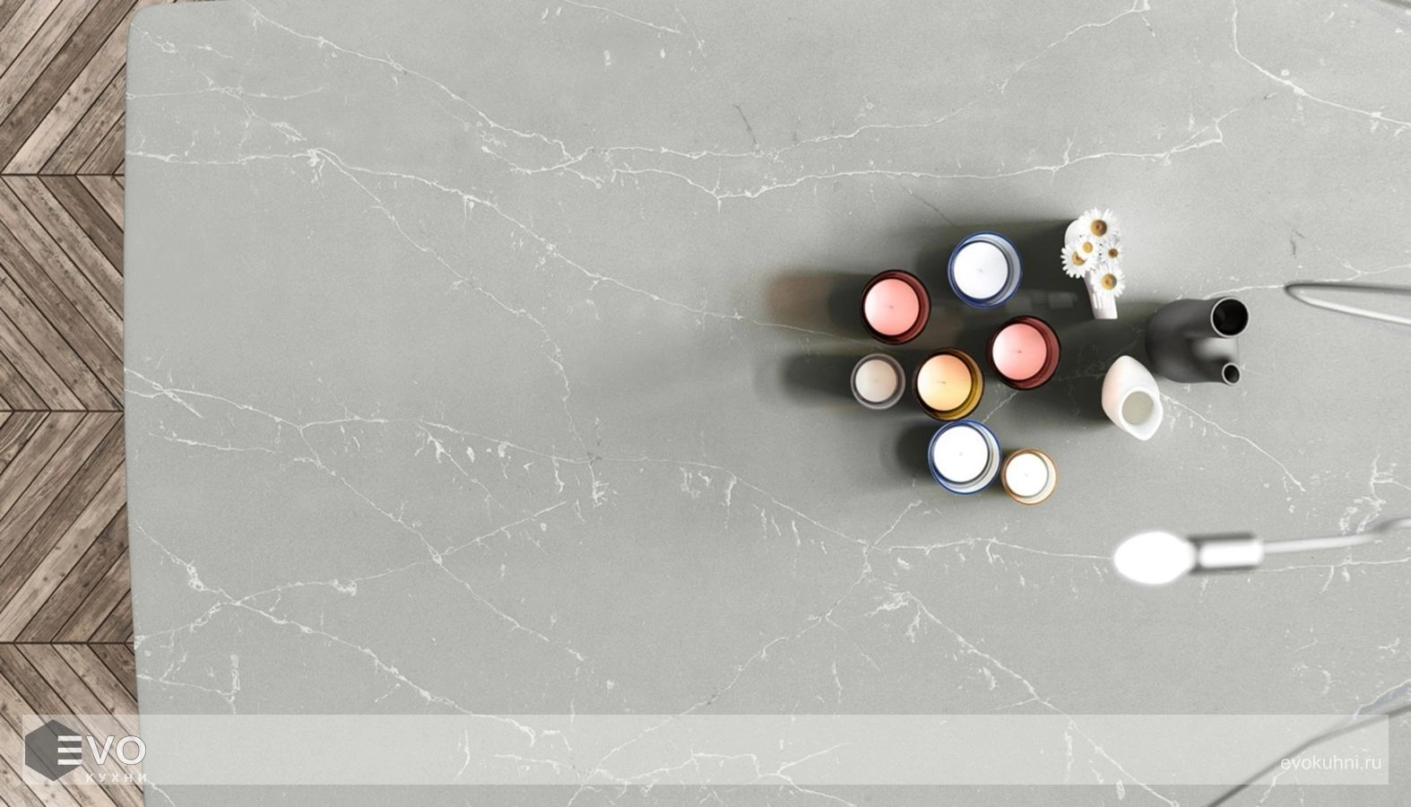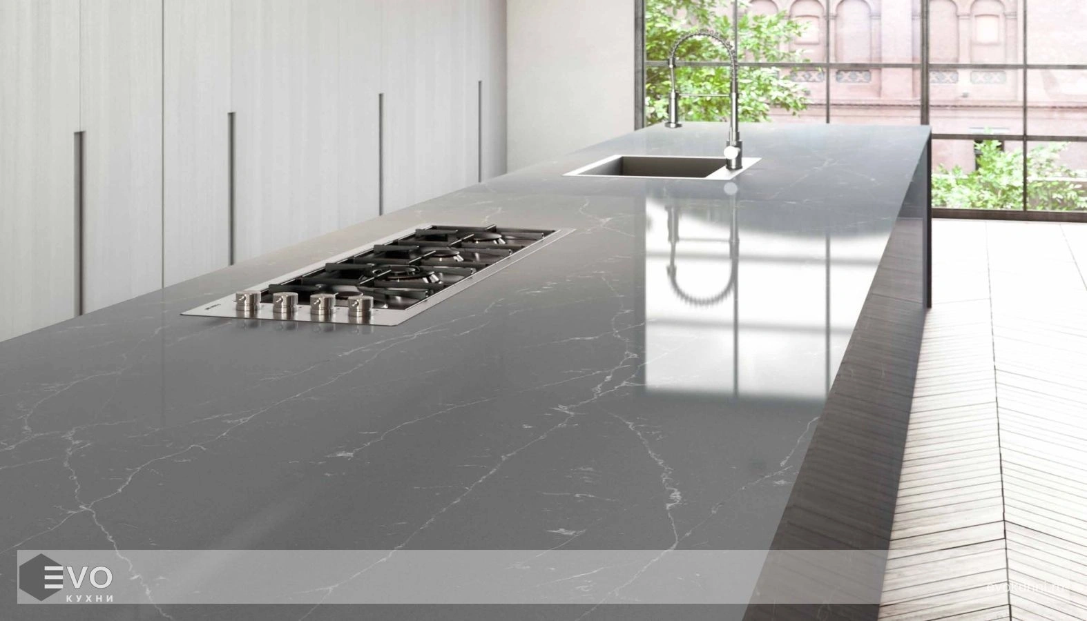 • Столешница для кухни из кварца будет очень удобна в использовании, потому что ее невозможно поцарапать ножом.