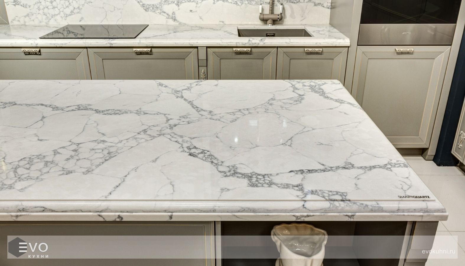 • Простота в уходе. SmartQuartz не пористый материал и поэтому устойчив к любым видам загрязнений. От кофе, чая, вина, лимонного или вишневого сока, ни от любых других продуктов, которыми вы обычно пользуетесь на кухне, пятен не останется.