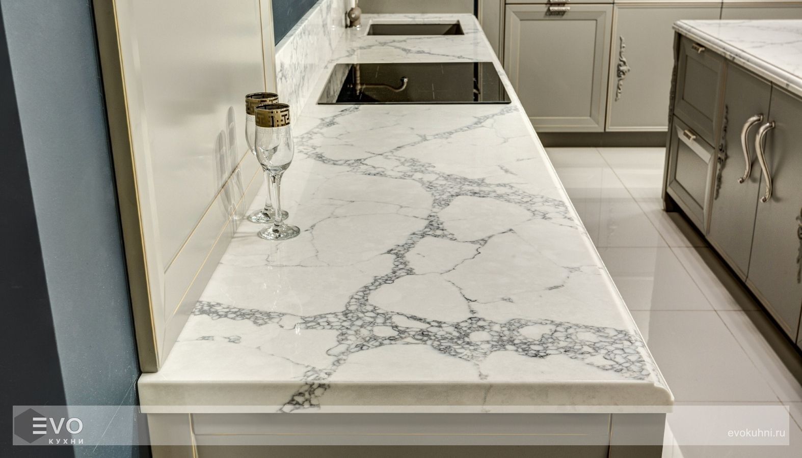 • Устойчивость к высоким температурам. Но, как и на другие поверхности из кварцевого камня, не следует ставить на него посуду, снятую с горячей плиты, желательно использовать теплоизолирующую подставку.