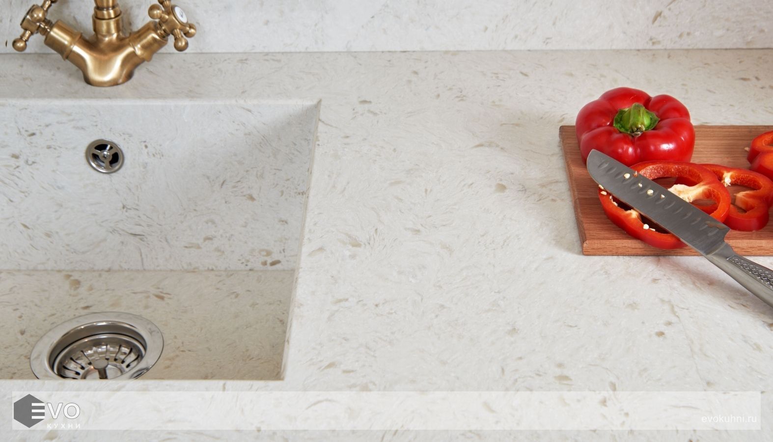 • Устойчивость к бытовым кислотам. Как уже было отмечено, кварцевый камень не имеет в своей структуре пор и трещин, что позволяет избегать негативного влияния на поверхность любых пищевых и химических продуктов. Благодаря этому никаких пятен и других загрязнений никогда не появится.