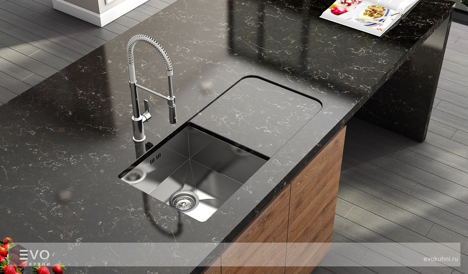- Устойчивость к бытовым кислотам. Как уже было отмечено, кварцевый камень не имеет в своей структуре пор и трещин, что позволяет избегать негативного влияния на поверхность любых пищевых и химических продуктов. Благодаря этому никаких пятен и других загрязнений никогда не появится.