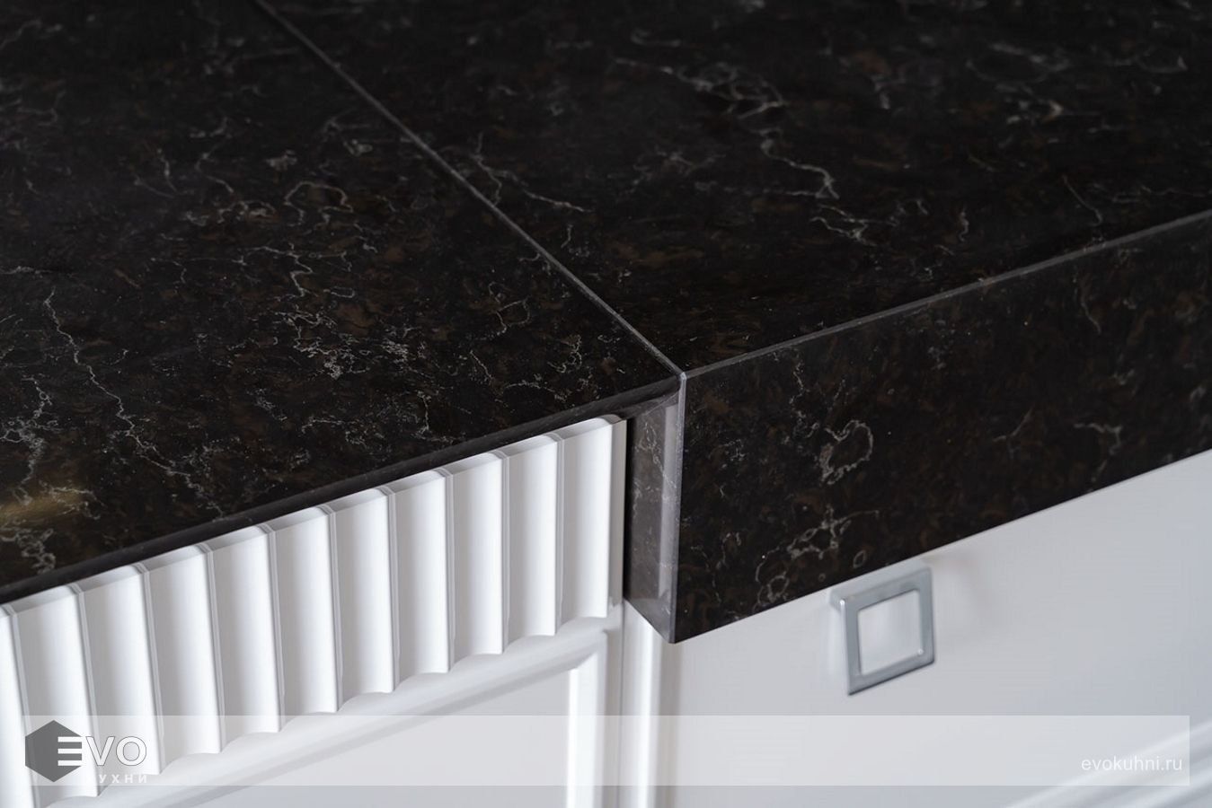 - Долговечность. У кварцевого камня полное отсутствие пор и внутреннего напряжения, за счет чего внутри не появляется ни одной трещины во время интенсивной обработки и установки. Это позволяет обеспечить долгое использование, что выгодно отличает его от более дорогих натуральных камней. Например, столешница из качественного агломерата Vicostone будет иметь новый вид на протяжении всего срока эксплуатации.