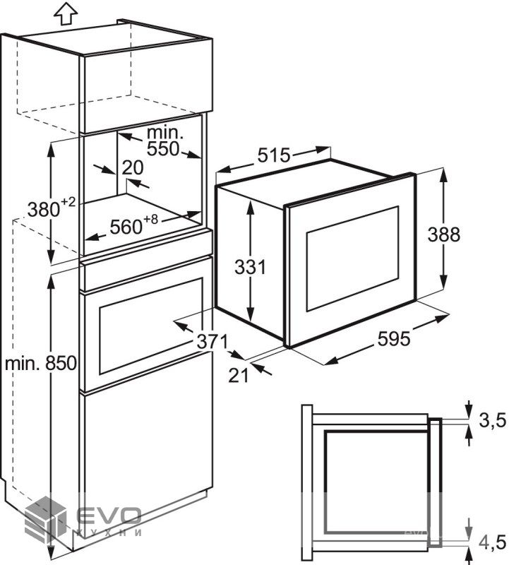 Микроволновая печь, встраиваемая, гриль; 26 л - полезный объем.