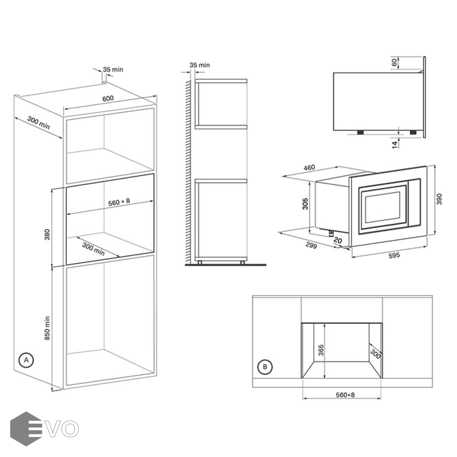 Размеры встраивания (ВхШхГ), мм: 380х568х300