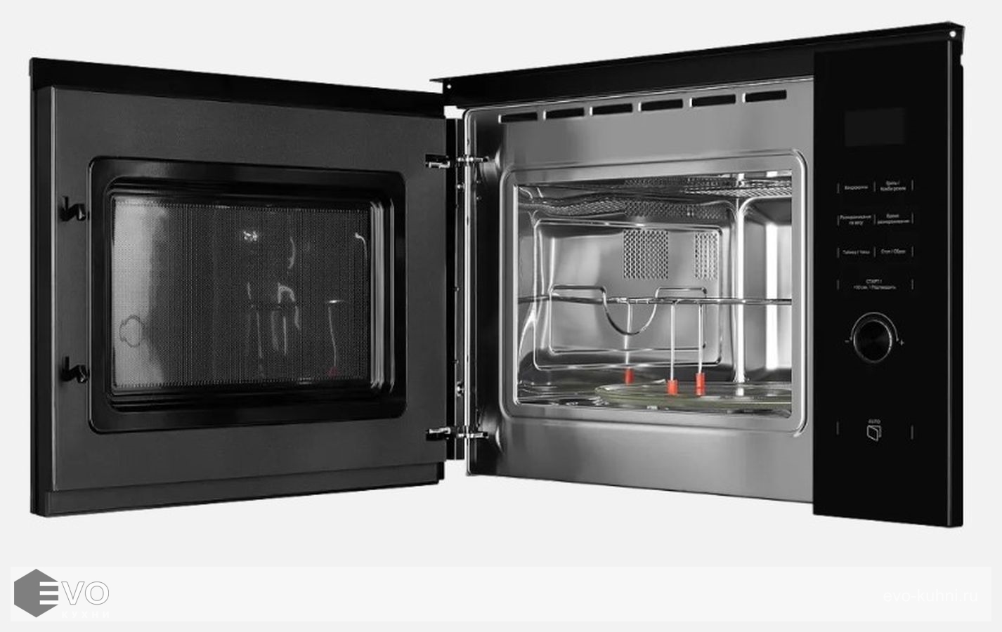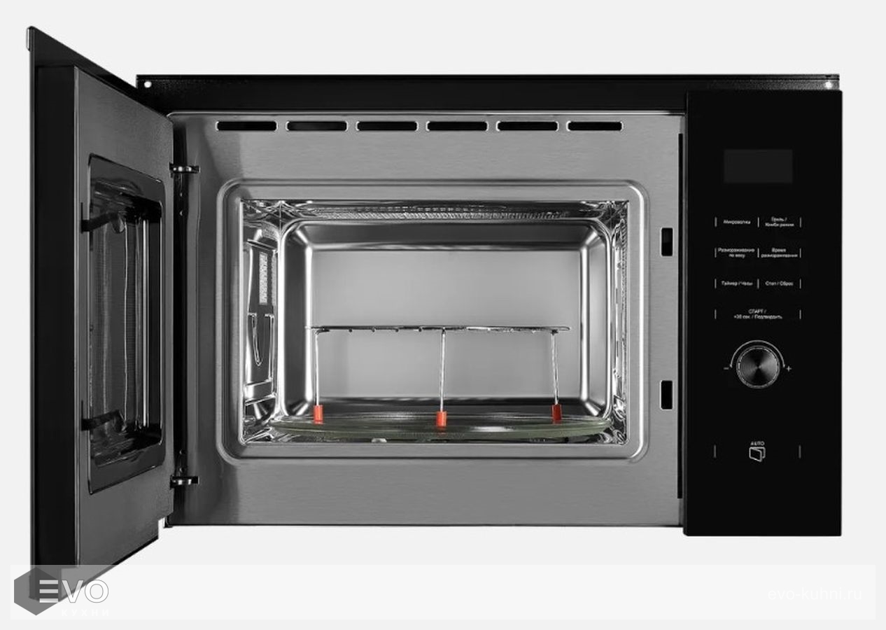 Поворотный стол большого диаметра позволяет спокойно разместить внутри микроволновой печи:
