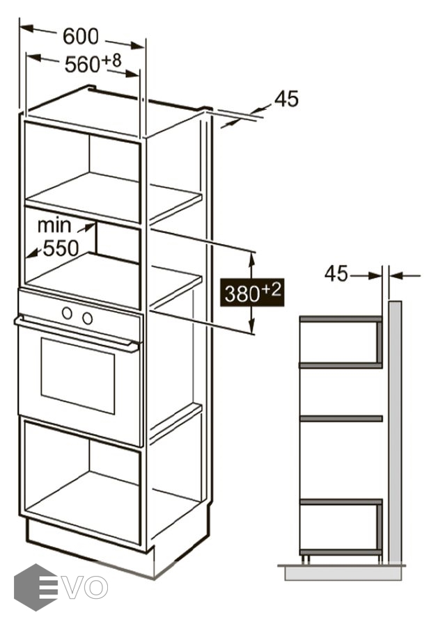 Размеры встраивания (ВхШхГ), мм: | 382х600х550 |