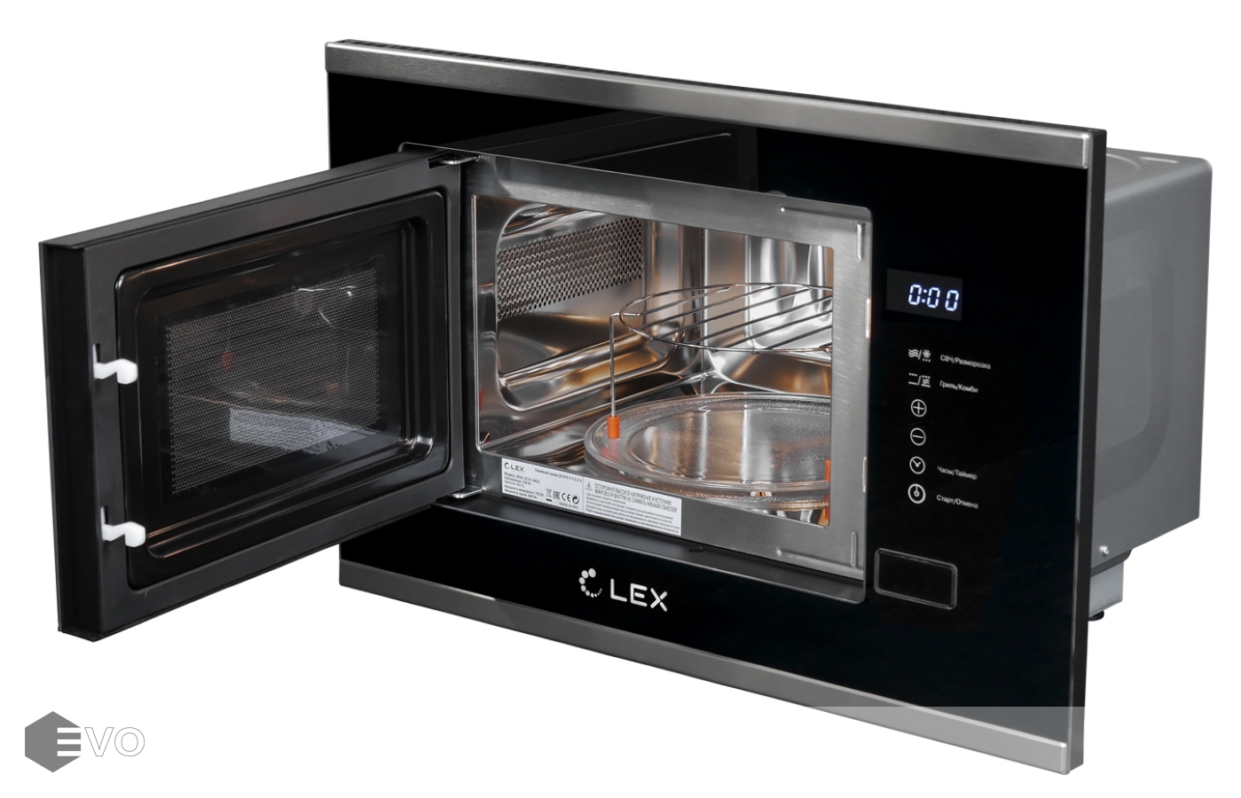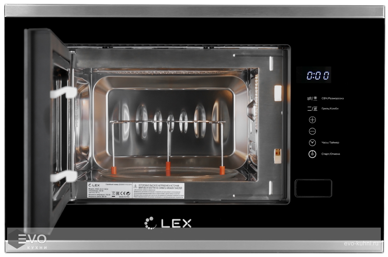 Микроволновая печь LEX BIMO 20.01 IX – встраиваемая микроволновая печь с грилем, которая позволит разморозить продукты, разогреть или приготовить блюдо. Внутренний объем составляет 20 л. Функция Таймера позволит запрограммировать работу прибора на определенное время, после чего произойдет отключение. Удобное управление с сенсорными переключателями и дисплеем позволит вам с легкостью пользоваться этой микроволновой печью.