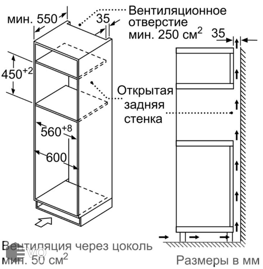 | Размеры встраивания (ВхШхГ), мм: | 450-452х560-568х550 |