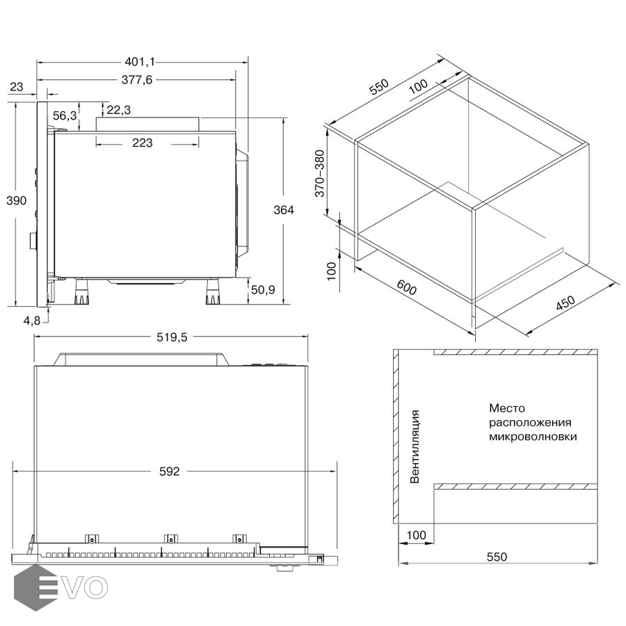 | Размеры встраивания (ВхШхГ), мм: | 370х600х550 |