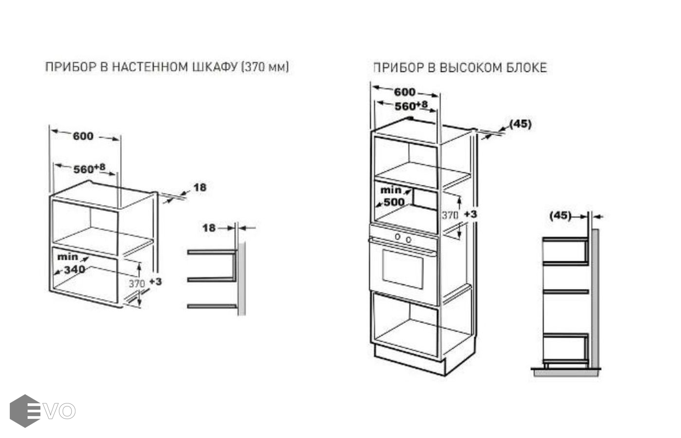 | Размеры встраивания (ВхШхГ), мм: | 370х560х340 |