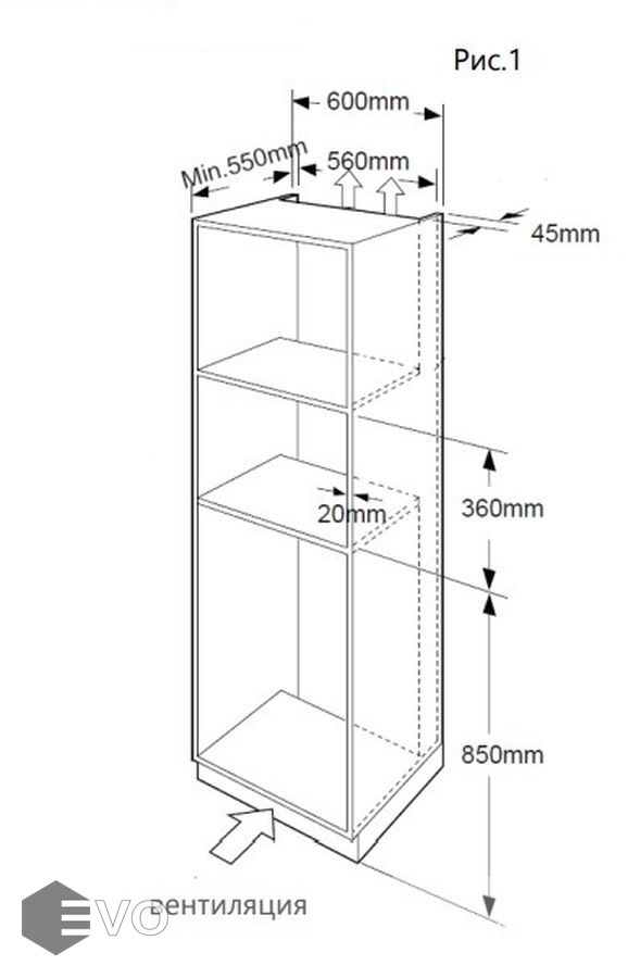Размеры встраивания (ВхШхГ), мм: | 360х560х550 |
