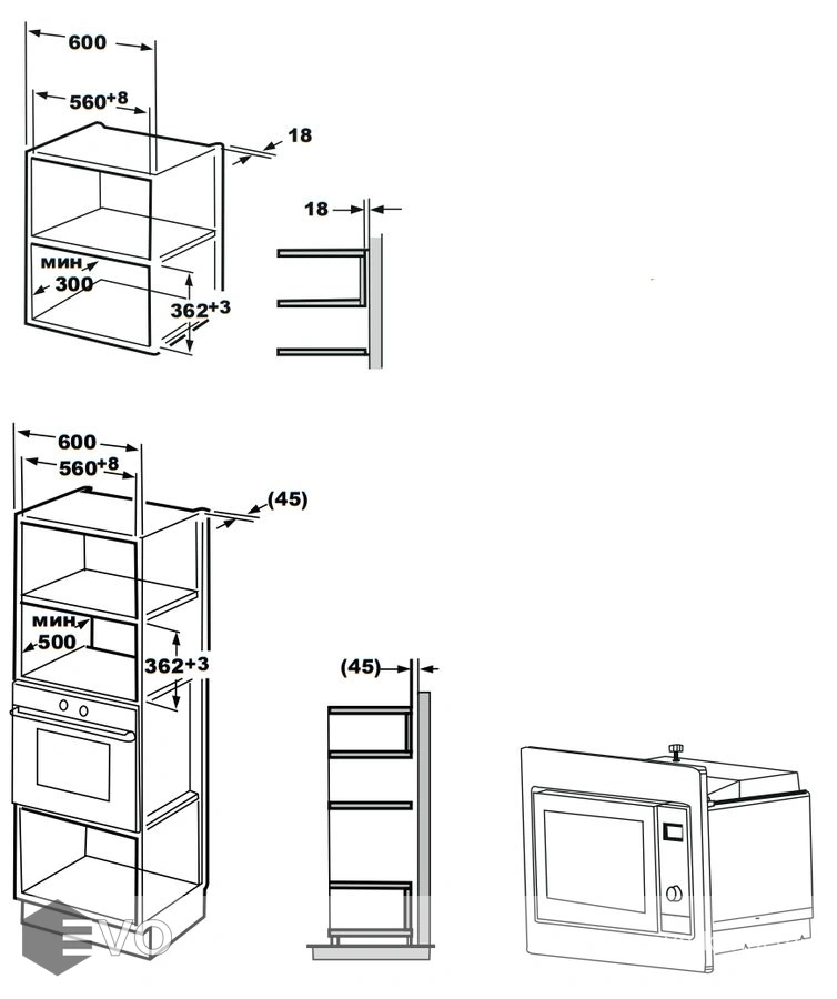 Размеры встраивания (ВхШхГ), мм: 365х568х500