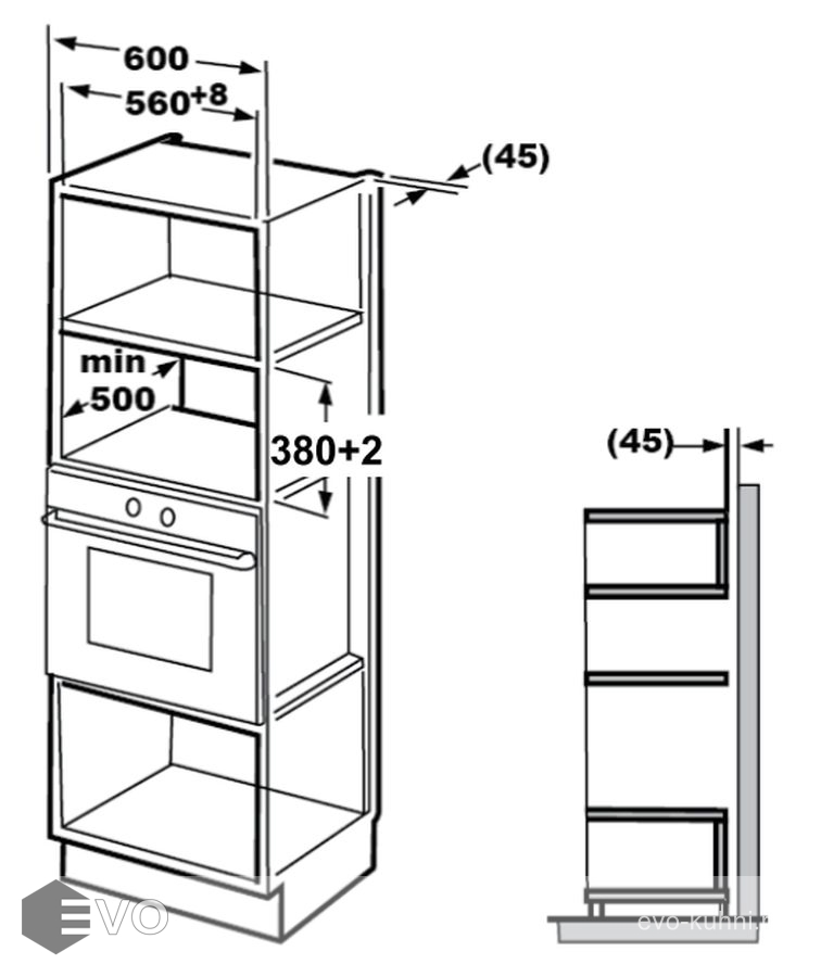 Размеры встраивания (ВхШхГ), мм: 380х560х500