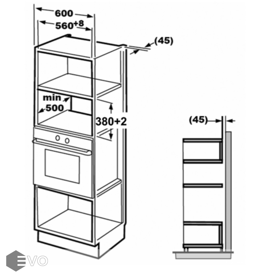 | Размеры встраивания (ВхШхГ), мм: | 382х568х500 |
