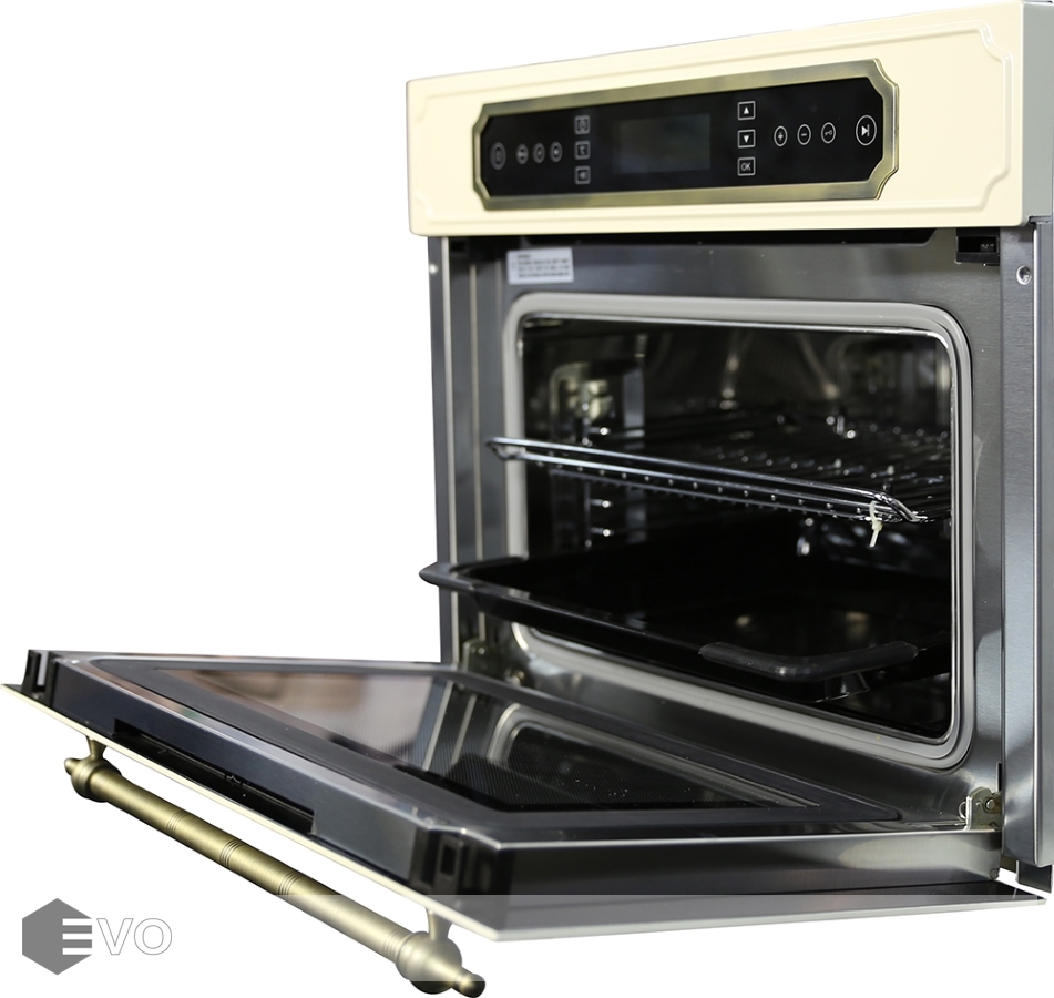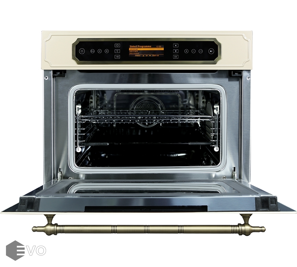 Эта микроволновая печь оснащена автоматическими программами приготовления, что открывает перед вами массу возможностей. Конвекция обеспечивает равномерное приготовление блюд. Вся информация о настройках и программах отображается на дисплее, а управление осуществляется с помощью сенсорных переключателей.