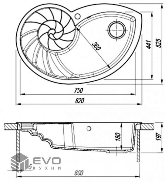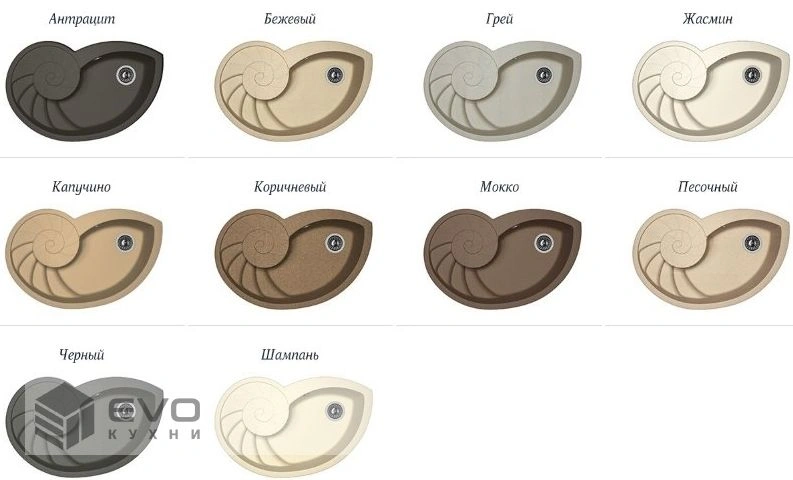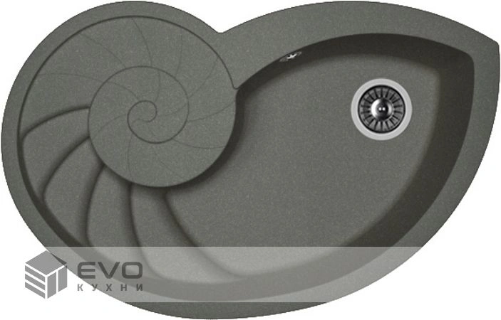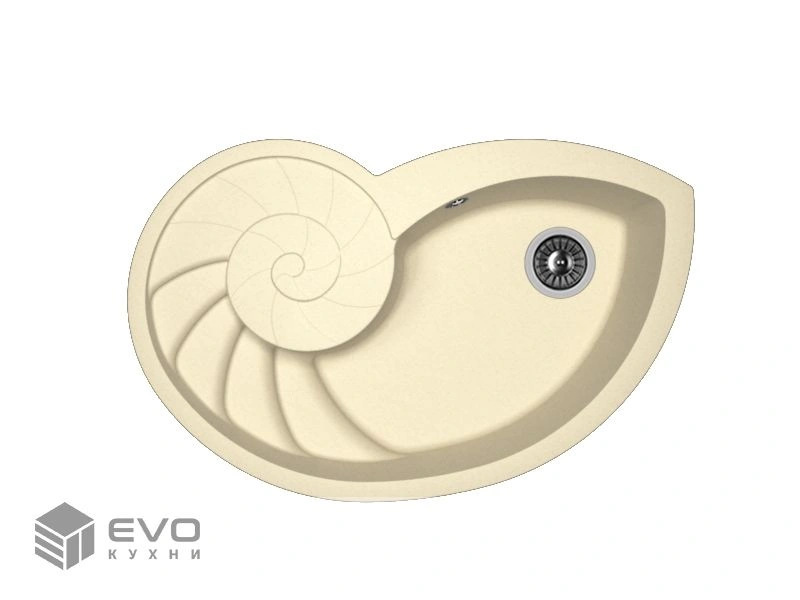 Необычная кухонная мойка, напоминающая форму раковины Наутилус.