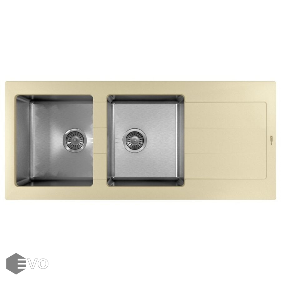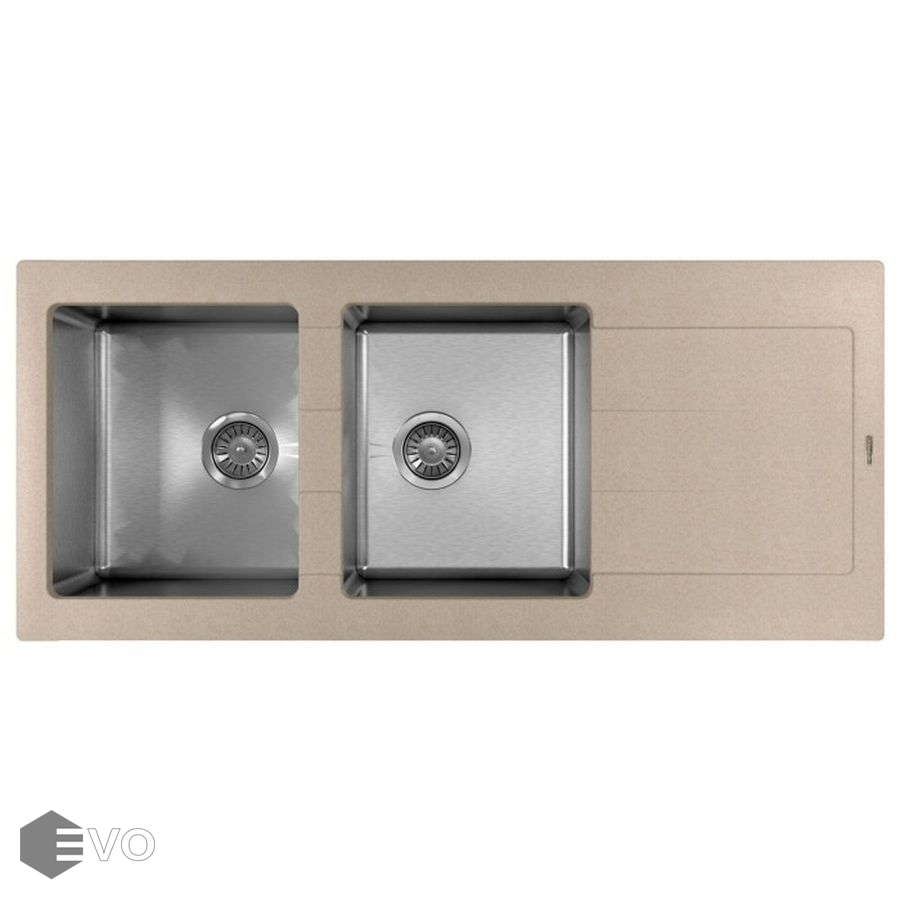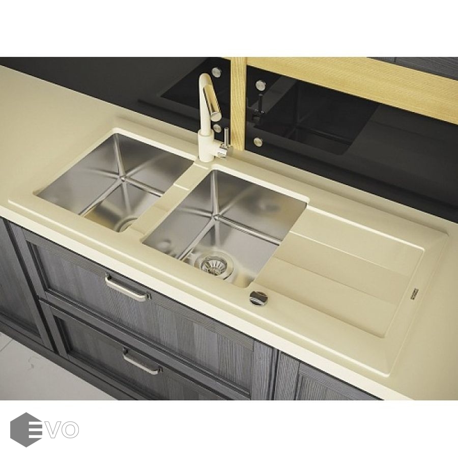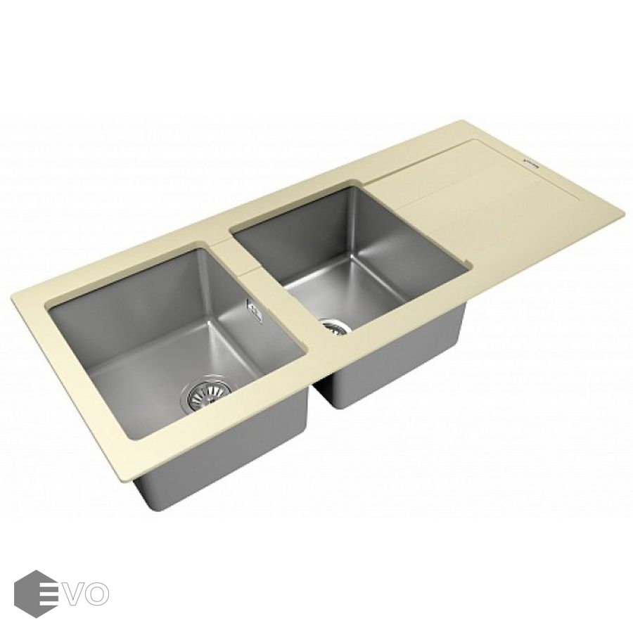Врезная комбинированная мойка Florentina Комби 1160 сделана из искусственного камня и нержавеющей стали толщиной 1 мм.