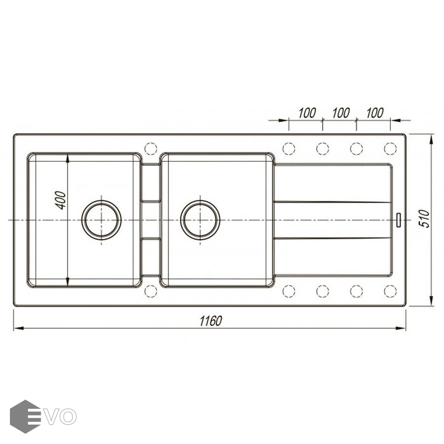 В комплектацию входит: отводная арматура с выпуском для двух чаш и переливом, шаблон для выреза, крепежи, гарантийный талон. Гарантия на модель 5 лет.