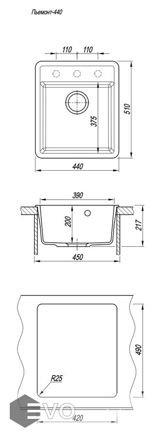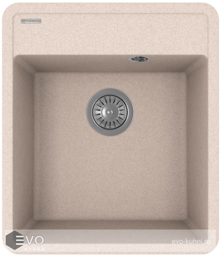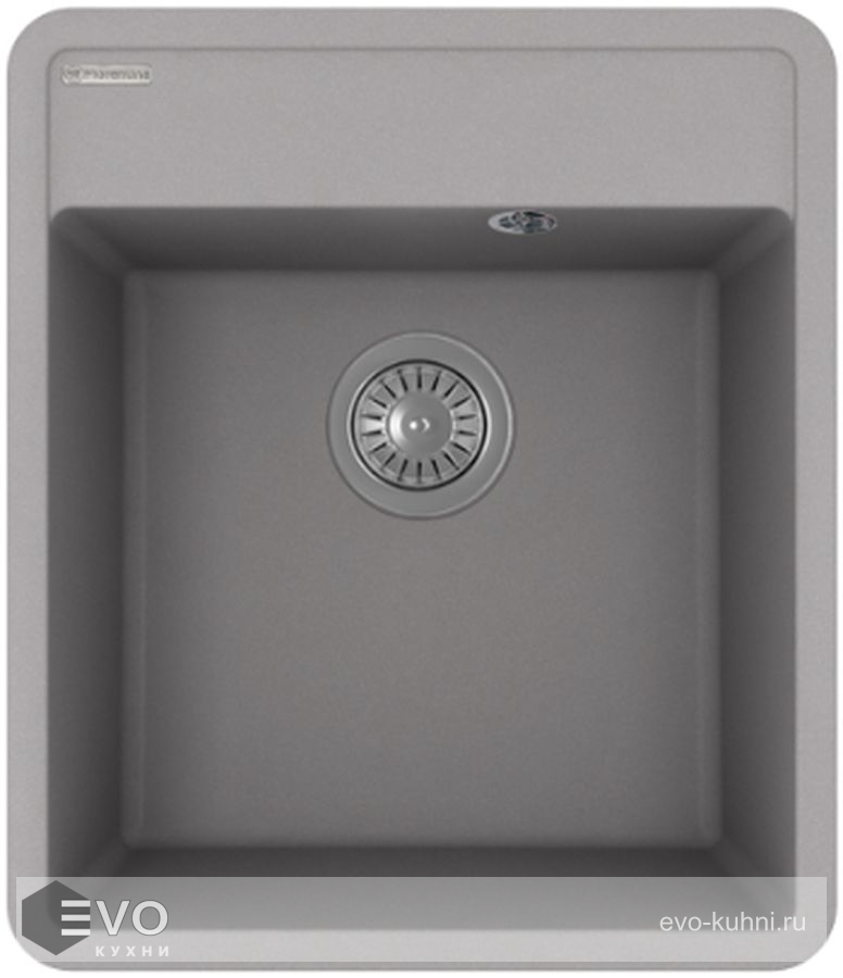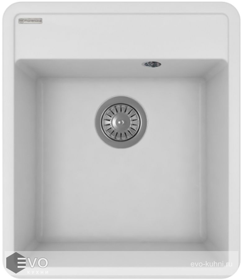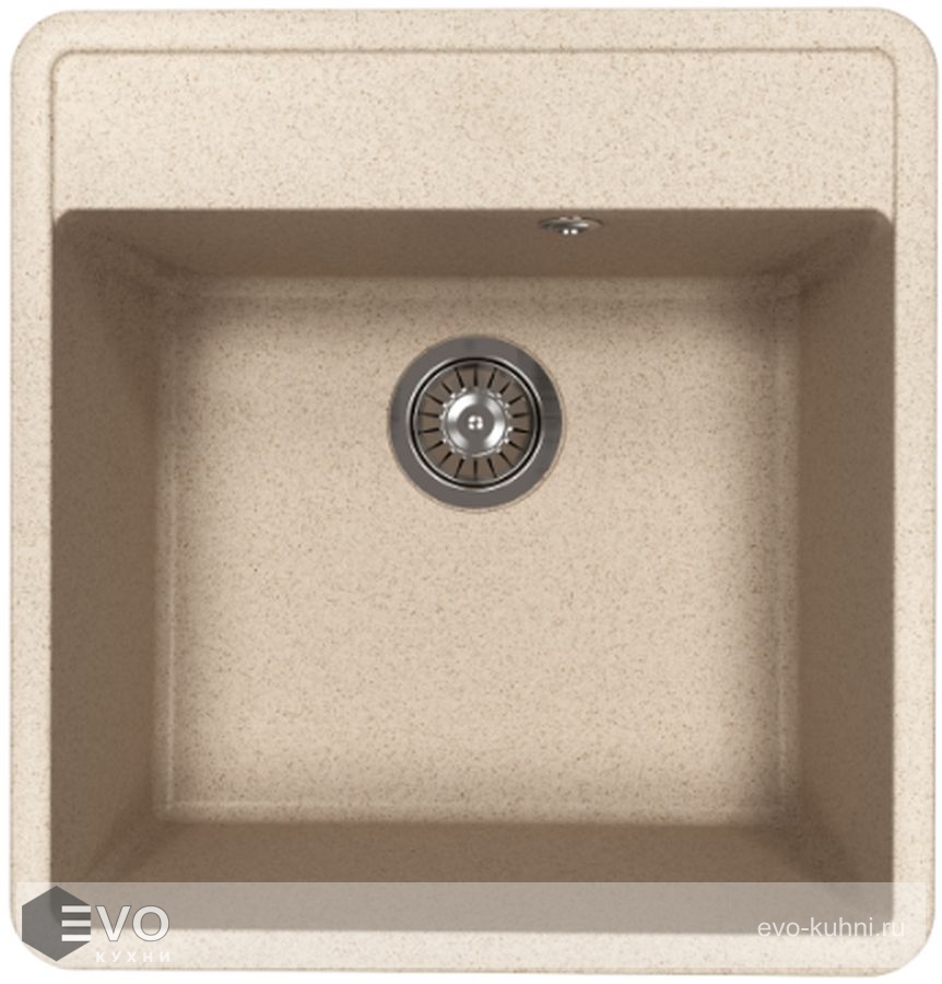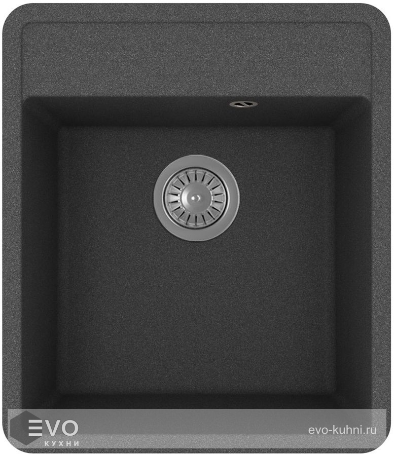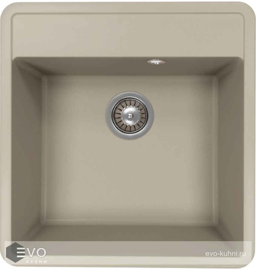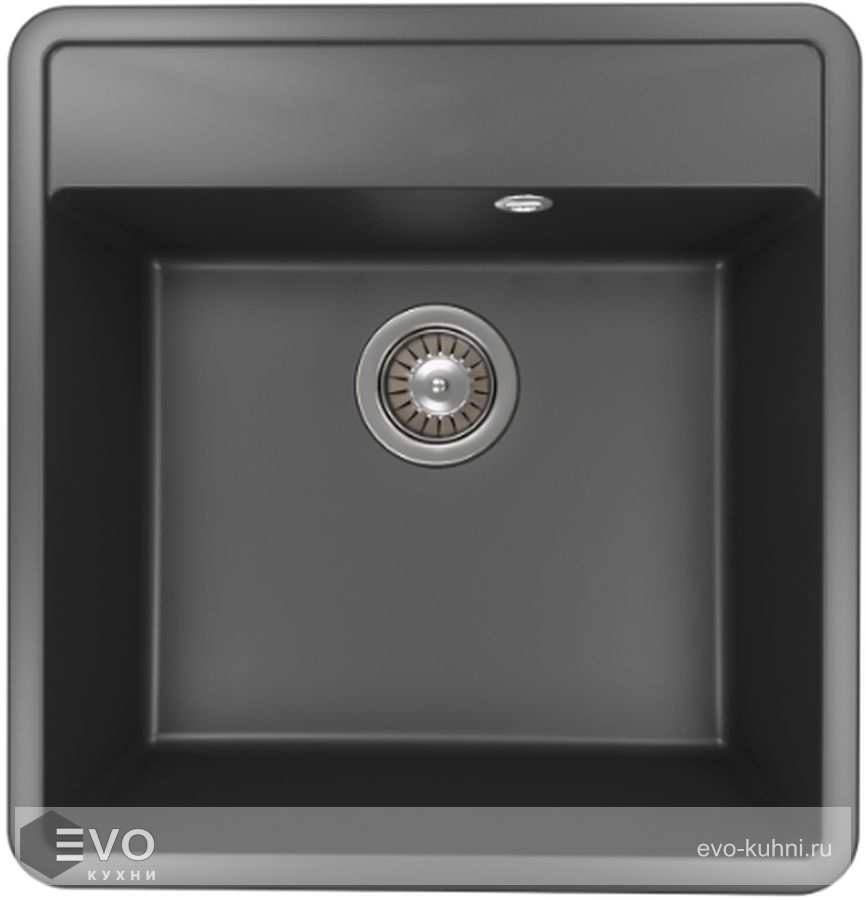 Квадратная мойка с большой чашей для кухонного шкафа 45 см. Предусмотрены отверстия для установки аксессуаров.