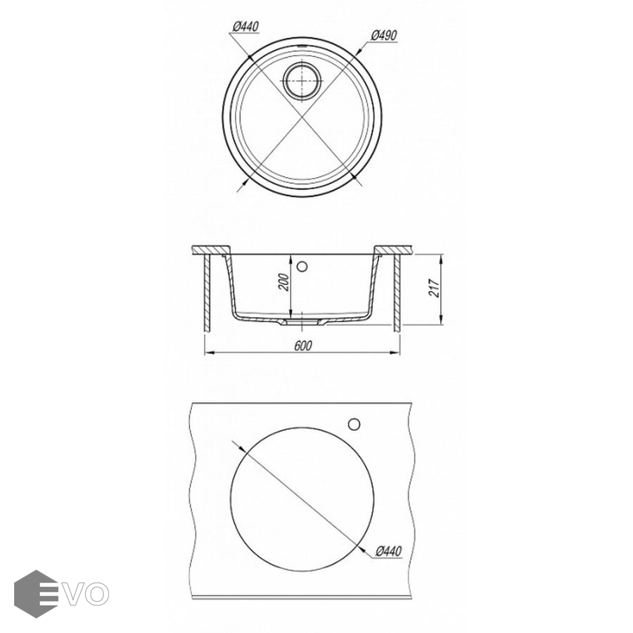 Мойка классическая круглая для кухни подстольного монтажа Florentina Вега Зеро изготовлена из композитного материала.