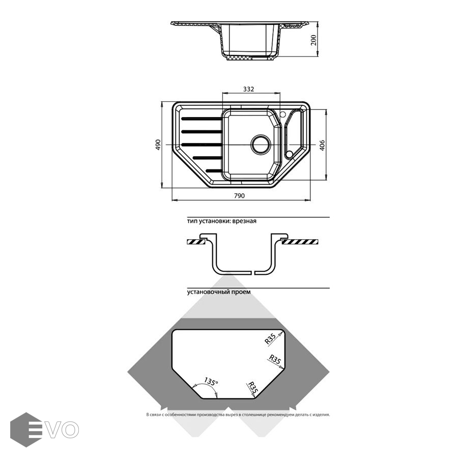 GRANFEST Мойка мрамор CORNER GF-C--800E угловая 800*500 мм черный арт.GF- станет удачным и функциональным решением для обустройства рабочего пространства на вашей кухне.