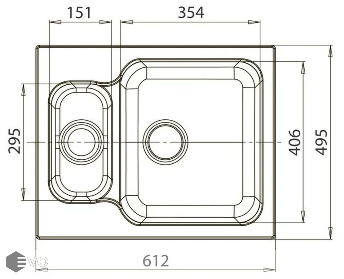 - Длина мойки 61.5 см