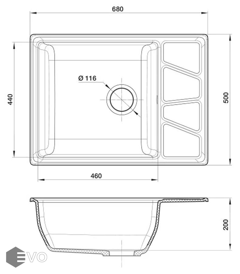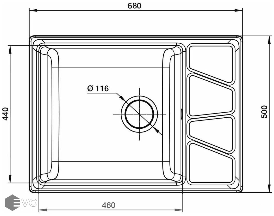Прямоугольная мойка порадует удобной шириной и глубиной чаши.