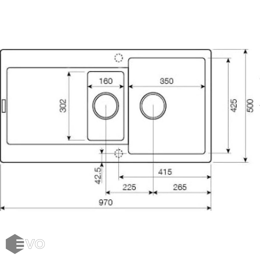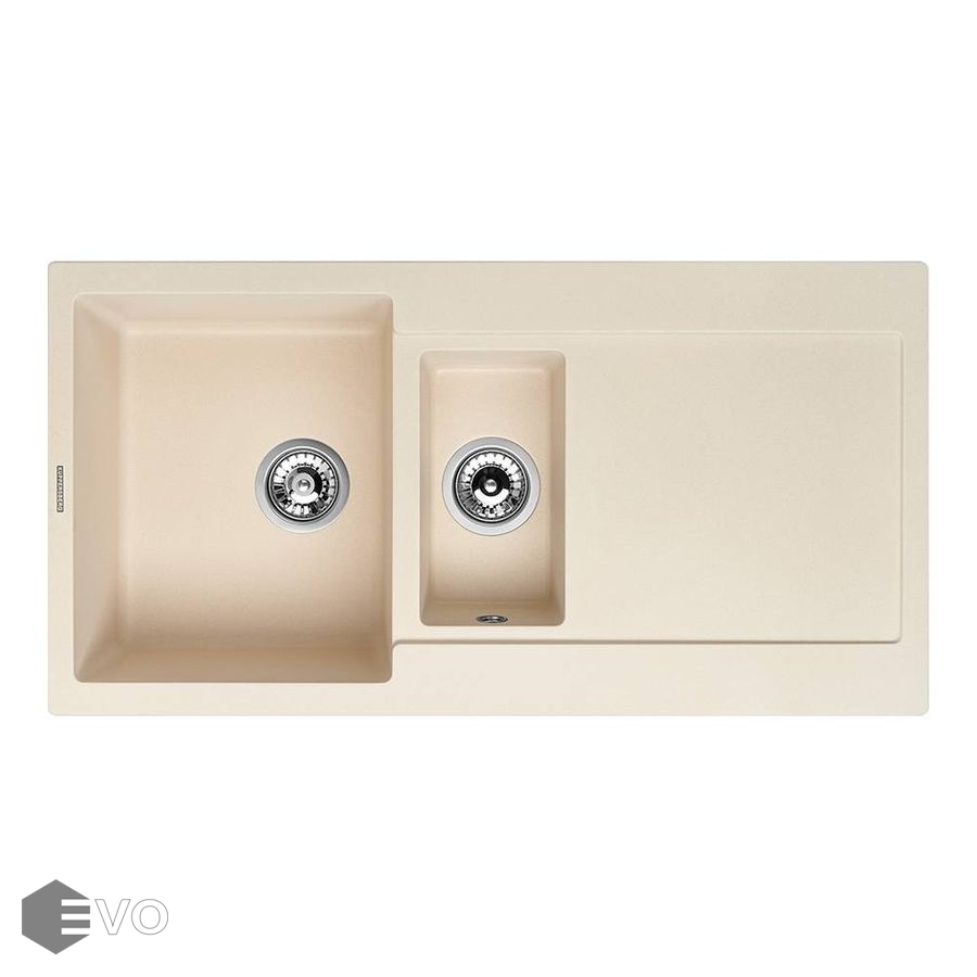 Это модель с двумя чашами различного размера и дополнительным крылом, которая делает мытье посуды особенно простым и удобным. Она также подходит для подготовки продуктов к дальнейшему использованию.