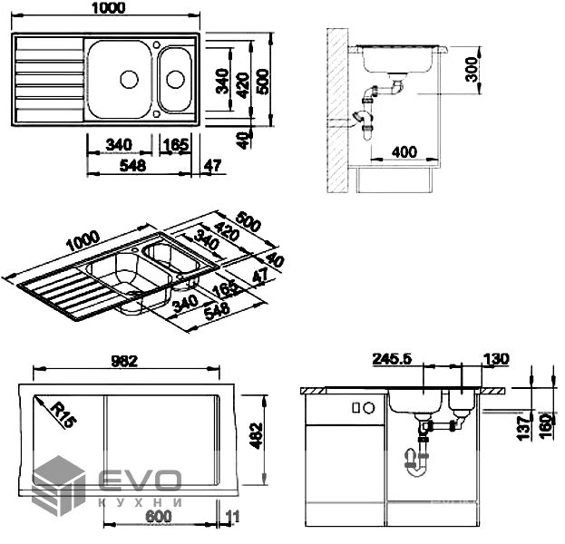 | Сверху на столешницу | Мойка устанавливается сверху в предварительно подготовленный вырез в столешнице. |