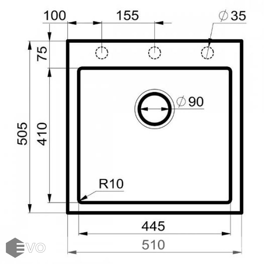 Изделие размером 51х50,5 см с чашей глубиной 20 см гарантирует удобство эксплуатации при мытье посуды, овощей и фруктов.