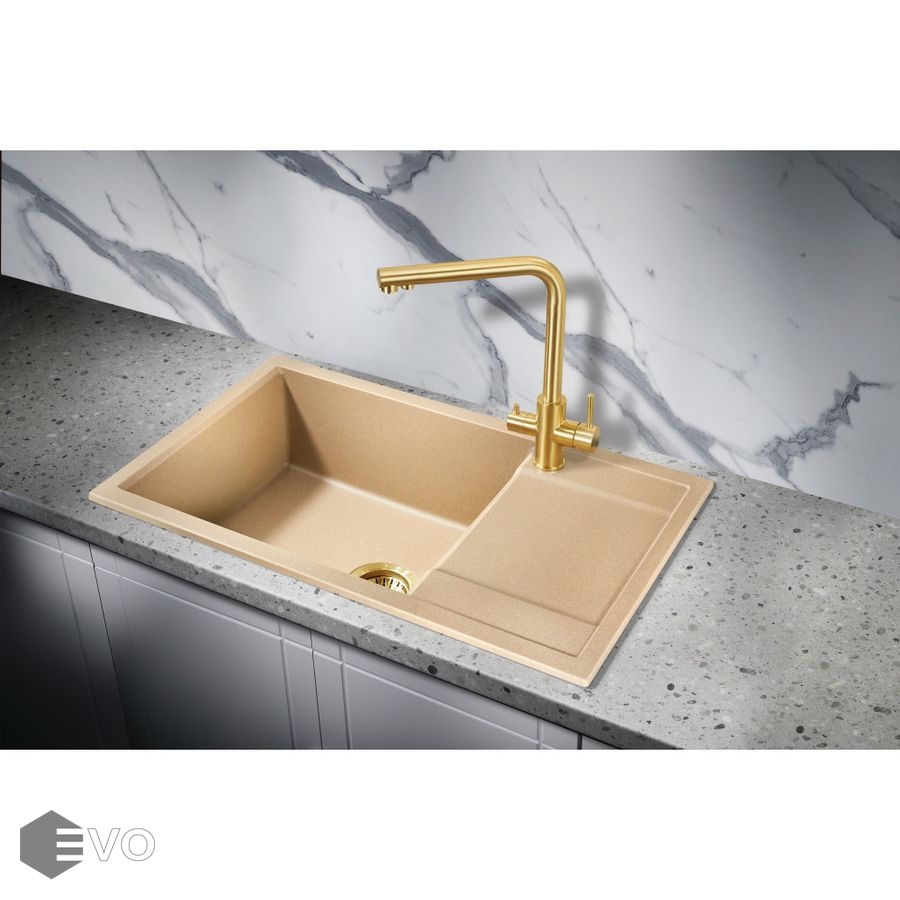 Большая врезная прямоугольная мойка для кухни из искусственного камня MILACIO Navarra 78 Cuarzo (MC.77054) в бежевом матовом цвете — лучшее решение, выполняющее как эстетические, так и практические функции. Раковина выглядит красиво и презентабельно и будет выгодно смотреться в любом современном интерьере, дополняя и подчеркивая его достоинства. Европейское качество от лучшего производителя!