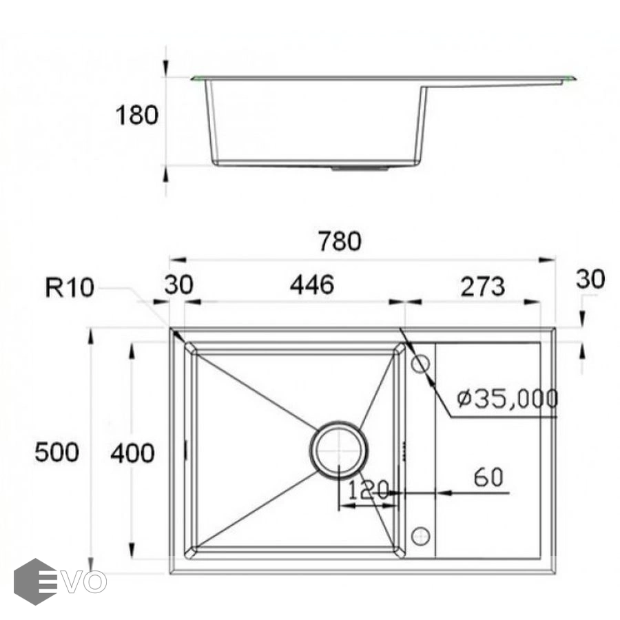 - глубокая вместительная моечная чаша 180 мм с радиусами скруглений R10 мм