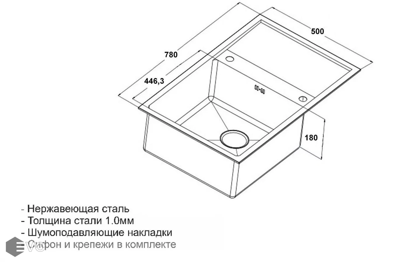 | Особенности: | корзинчатый вентиль отверстие под смеситель сливная арматура в комплекте |