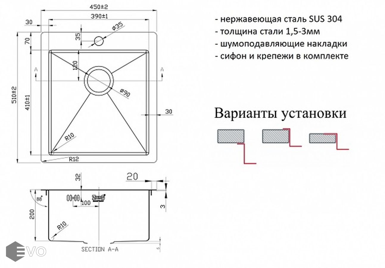 - Тип монтажа: Врезная сверху / Под столешницу / В уровень со столешницей