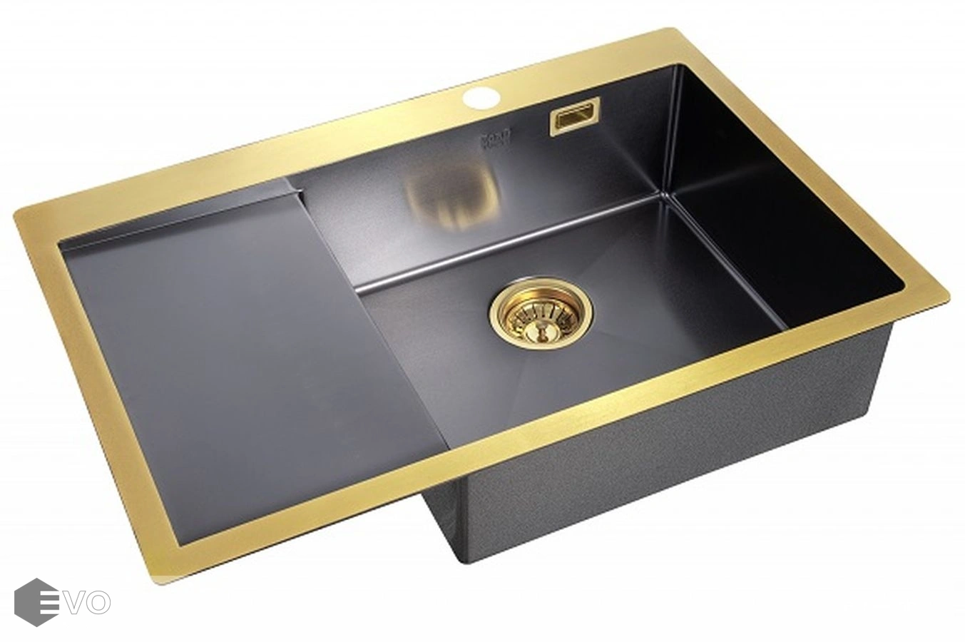 Сама мойка производится из высококачественной нержавеющей стали с последующей специальной PVD-обработкой в цвет графит. Покрытие наносится в специальной вакуумной камере и проникает в поверхность изделия на молекулярном уровне. Молекулы наносимого металла соединяются с нержавеющей сталью и получается красивая благородного цвета кухонная мойка. Такая поверхность прочна и долговечна, не стирается по прошествии времени.